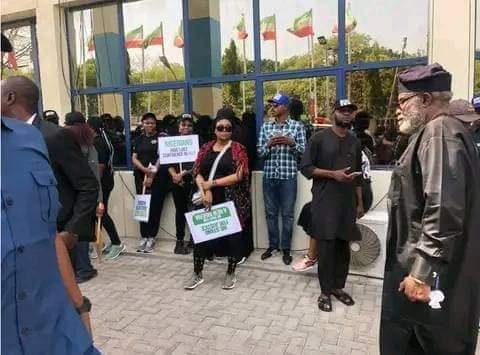 The Presidential candidate of the People’s Democratic Party, PDP, Atiku Abubakar and his running mate, Ifeanyi Okowa are currently leading a protest today (Monday) to the national headquarters of the Independent National Electoral Commission, INEC in Abuja.