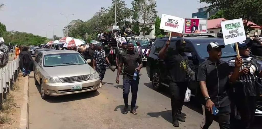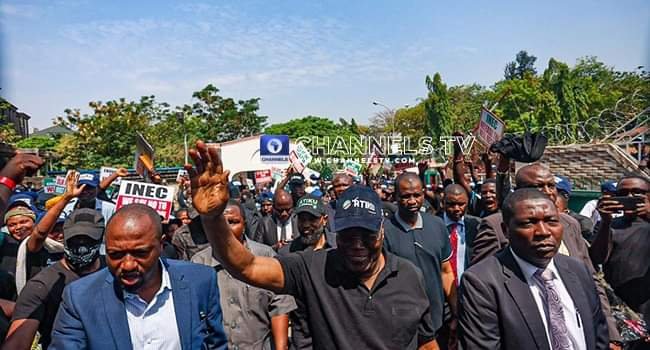 2023 Election: Atiku, Ayu, others lead protest to INEC hqtr in Abuja