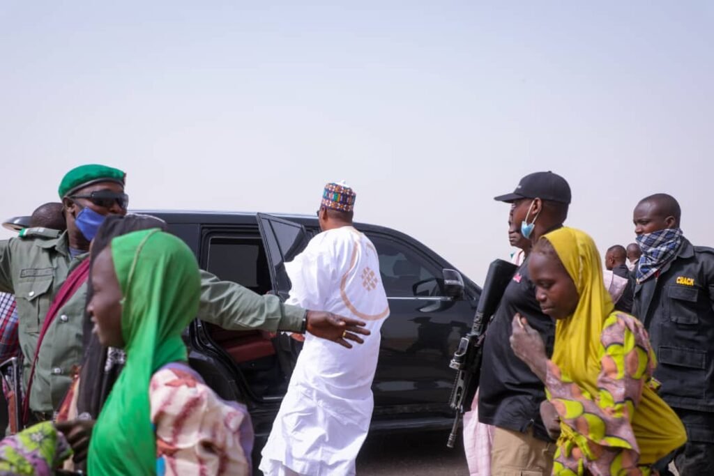 Then the Governor zoomed out of his official car and headed straight to where the girls stand, he asked what they have come to do at this place, about 15km to the twon of Monguno.