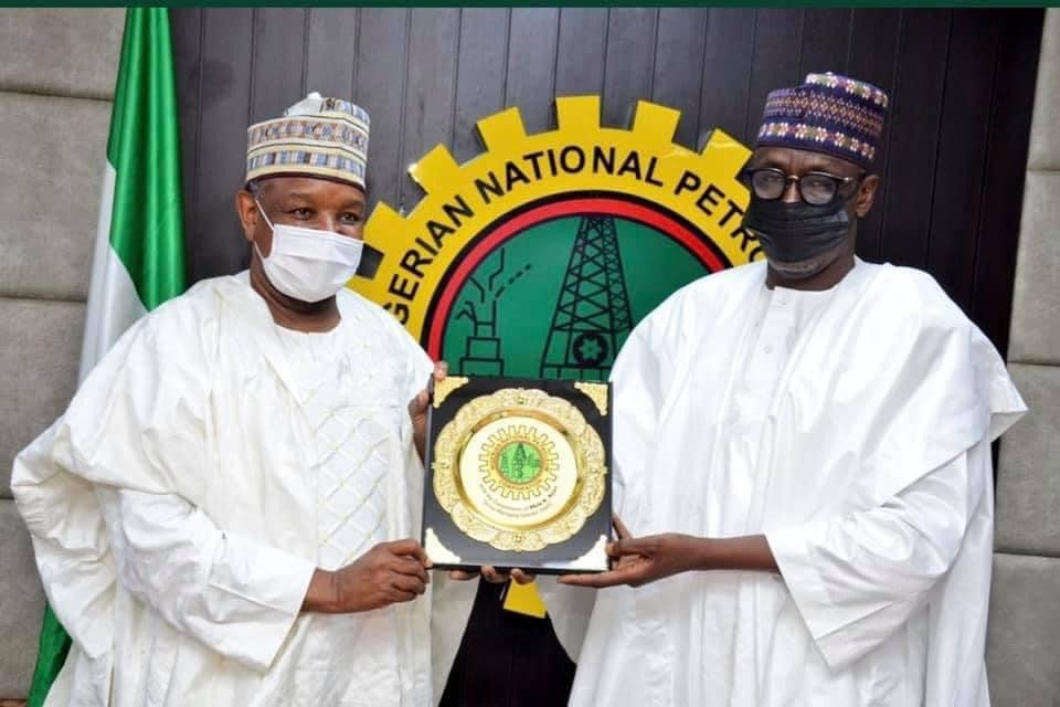 The Kebbi State Governor, Senator Abubakar Atiku Bagudu on Thursday, 8th April,2021 paid a courtesy visit to the Group Managing Director , GMD, Malam Mele Kyari at the NNPC Towers in Abuja .