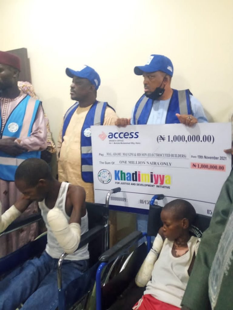 The Khadimiyya for Justice and Development Initiative (KJDI), Kebbi based – NGO,  has  donated N1 million for the treatment of a 12-year-old boy and his father who have lost their hands and legs respectively to electrocution in Kano State.