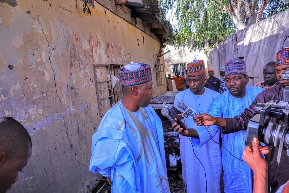 Borno Governor, Babagana Umara Zulum, has visited the 1,000 units housing estate in Maiduguri which was hit on Saturday morning by a rocket launcher believed to have been fired by Boko Haram/ISWAP terror groups.