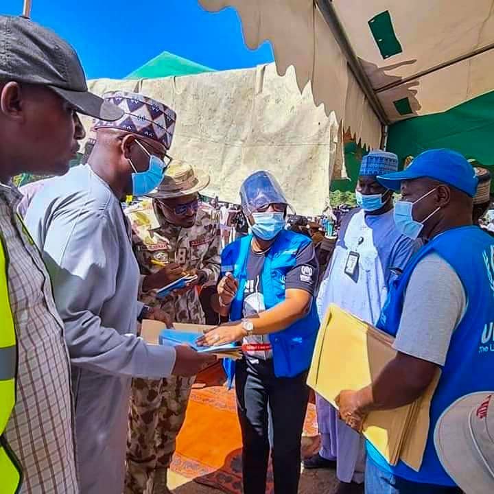 After receiving the refugees, Governor Zulum in Banki town, flagged-off presentation of food and non food items to the 5,000 Nigerian.