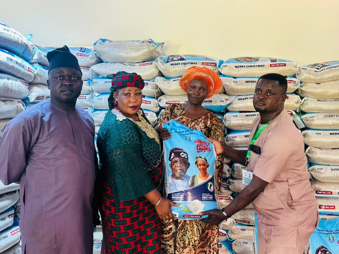 Nigerian First Lady Senator Oluremi Tinubu, through the Taraba State Chapter of the Christian Northern Nigeria Political Forum (CNNPF) has distributed over a Thousand bags of rice to less privileged persons across Taraba State as part of activities to mark the festive season.
