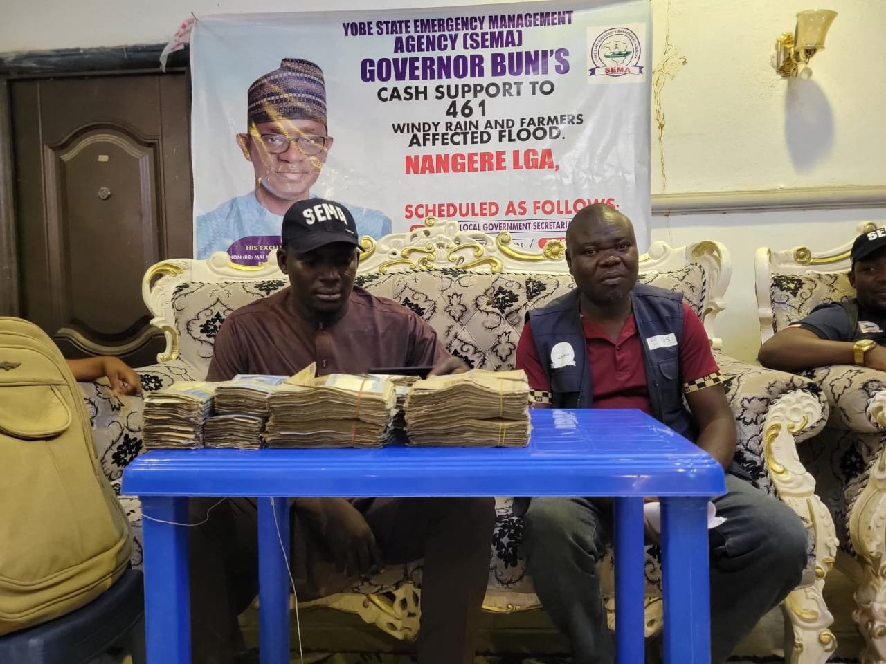 The Yobe State Emergency Management Agency (SEMA), under the leadership of Governor Mai Mala Buni CON, has continued its recovery support to victims of floods and windy rains through the disbursement of cash assistance to 461 affected farmers in Nangere Local Government Area.