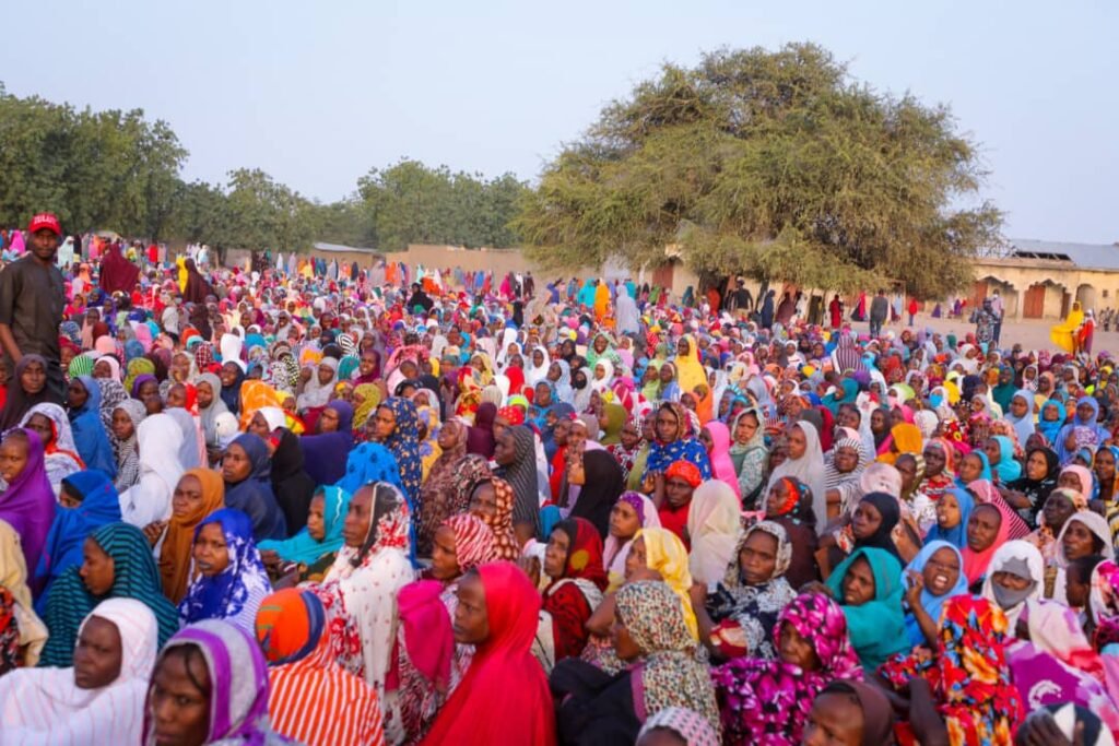 30,000 female residents received N5,000 cash and a wrapper each, another 4,372 male residents received N10,000 cash each, while 14,328 male residents, each received a bag of rice, a bag of Maize grain and a bag of beans.
