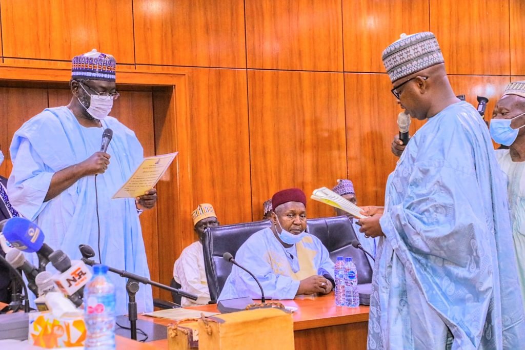 The oath of office was administered by the Chief Judge of Borno, Justice Kashim Zanna.